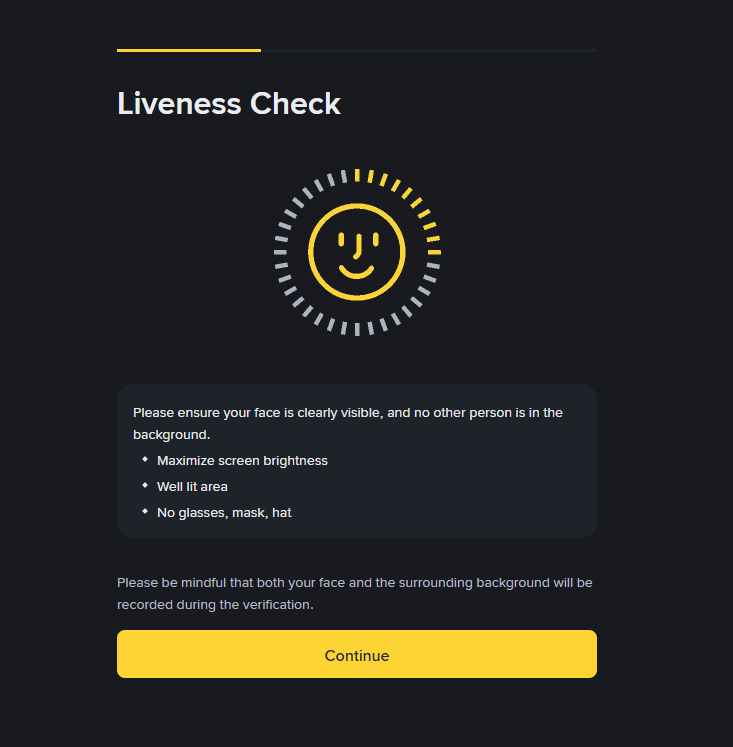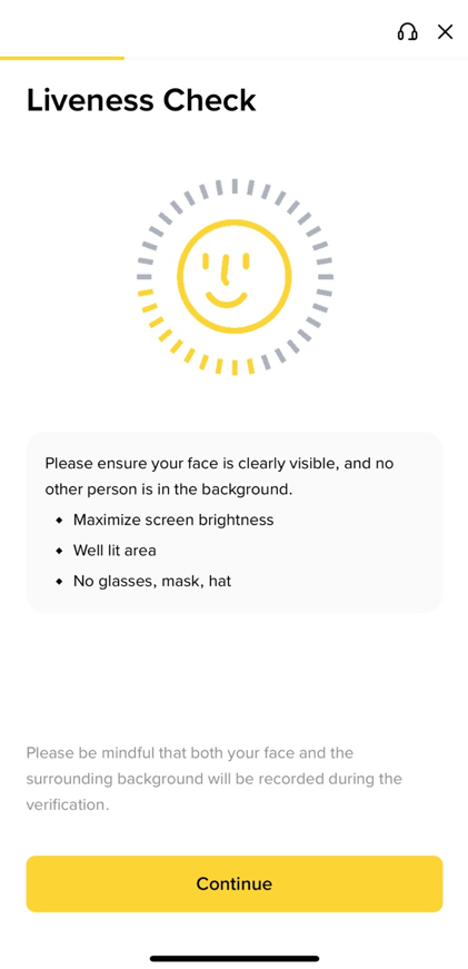 얼굴 정면을 먼저 인증하며, 그 다음 가이드에 따라 얼굴 좌측, 얼굴 우측을 인증해주시면 KYC 인증이 완료됩니다