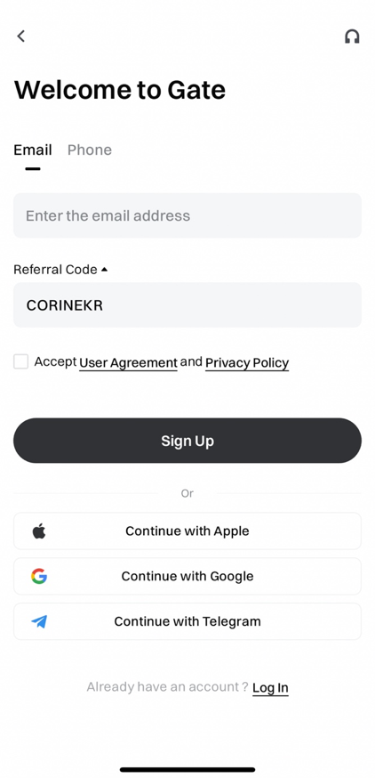 사용할 이메일을 입력하시고 Referral Code (Optional) 을 클릭하여 레퍼럴 입력란을 열어 CORINEKR 코드를 입력해주세요