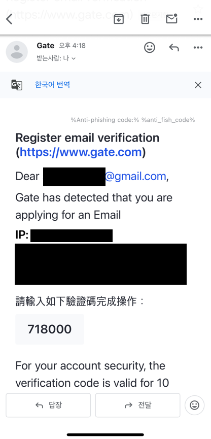 설정한 이메일의 메일함을 확인하여 게이트아이오 회원가입 인증코드를 확인하세요