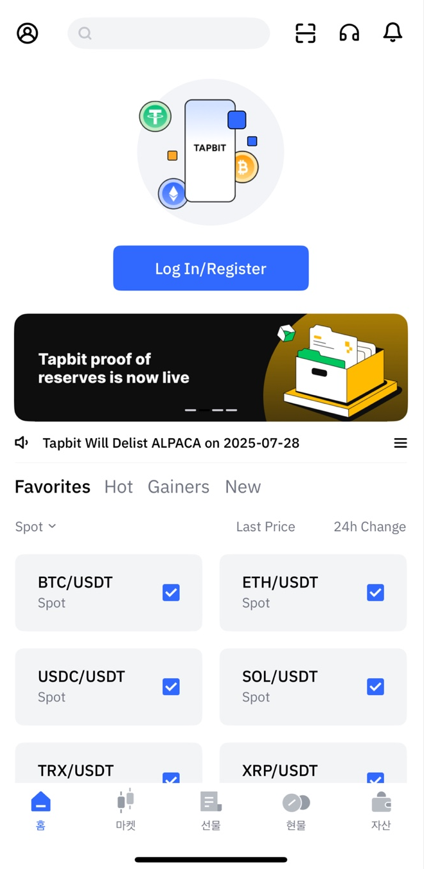 앱을 실행하시고 상단의 Log In / Register 을 클릭 해주세요
