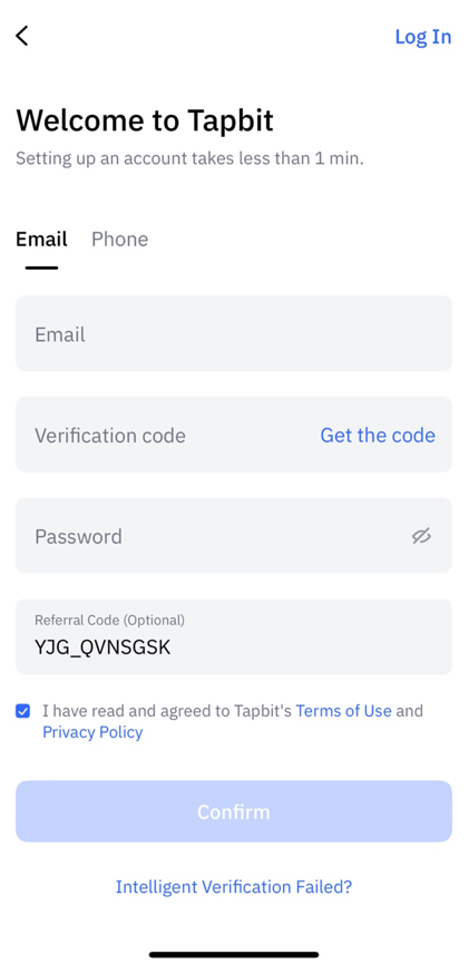 비밀번호를 설정해주시고 레퍼럴 코드를 입력하신 다음 약관에 동희 후 Confirm 을 누르시면 가입이 완료됩니다