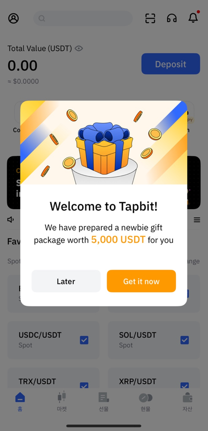 주소창에 tapbit.com 직접 입력하여 접속합니다 (수동으로 YJG_QVNSGSK 코드 입력)