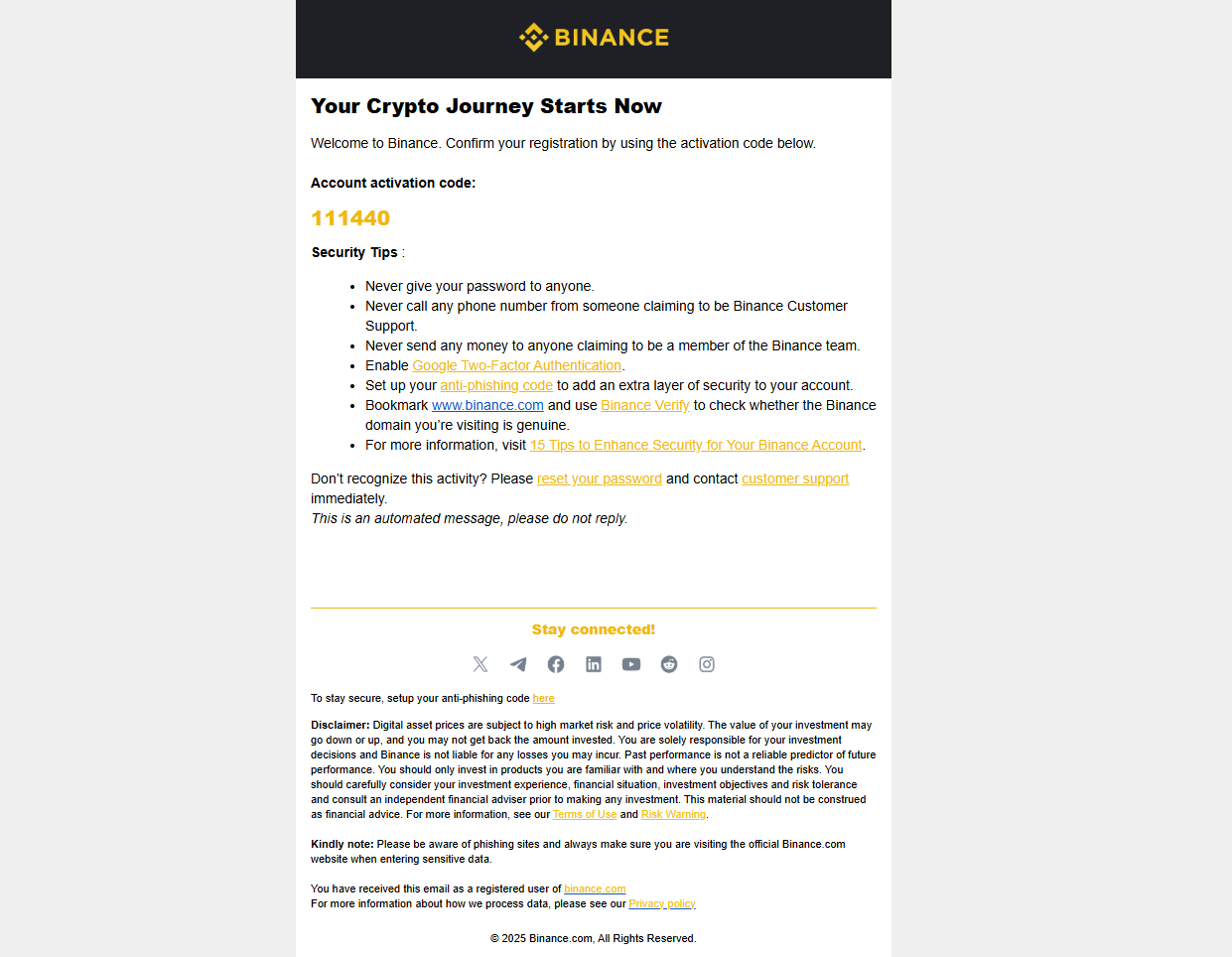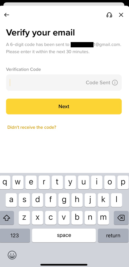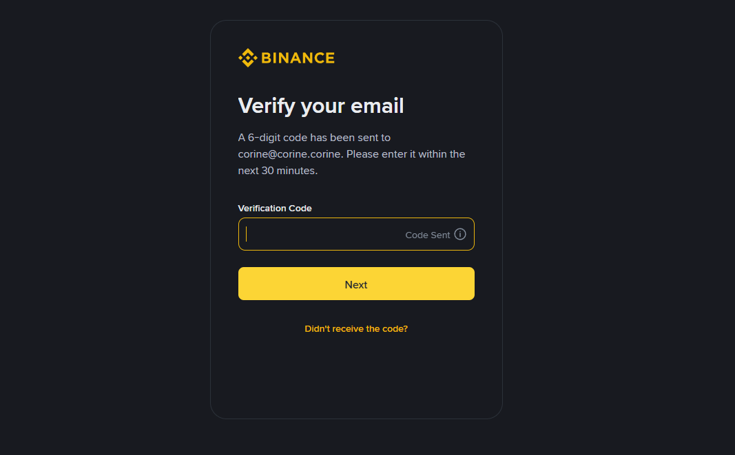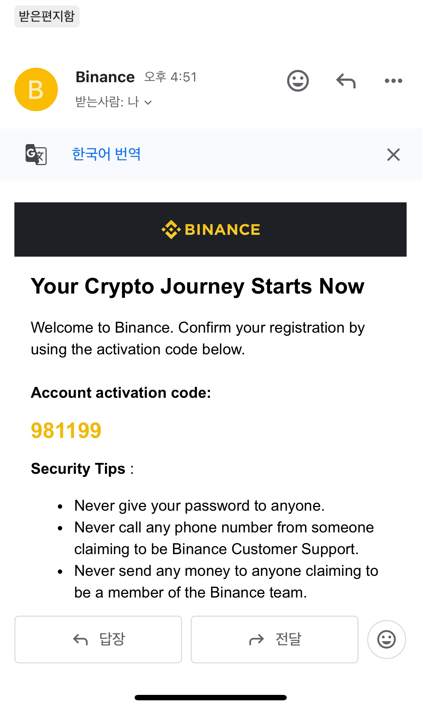 바이낸스에서 이메일로 인증번호 6자리를 보냈습니다
