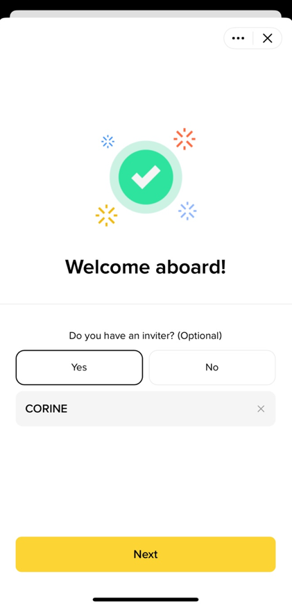 초대코드를 입력하시려는 분들은 YES 를 선택하시고 코드를 입력하신 다음