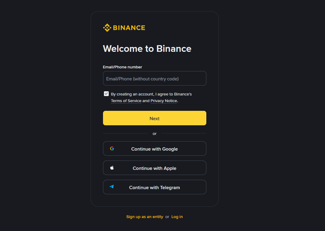 주소창에 binance.com 직접 입력하여 접속합니다 (수동으로 CORINE 코드 입력)