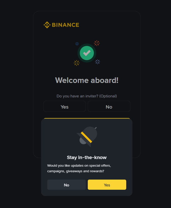 바이낸스 최신 정보를 받을지 안받을지 선택하는 팝업이 뜹니다