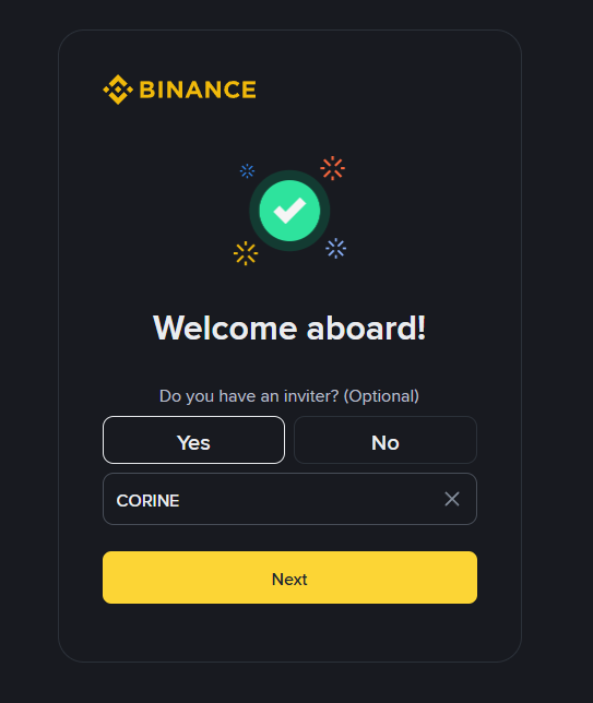 마지막으로 Yes 를 클릭하시고 CORINE 코드를 입력하신 다음 Next 를 눌러주시면 가입이 완료됩니다