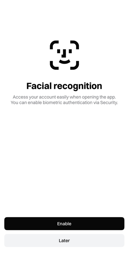 앱 접속시 얼굴로 인증하여 접속하시려면 Enable 을 눌러주세요