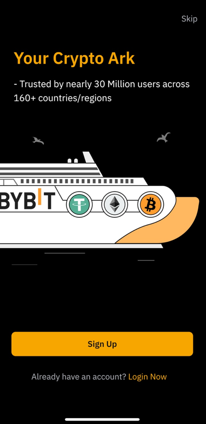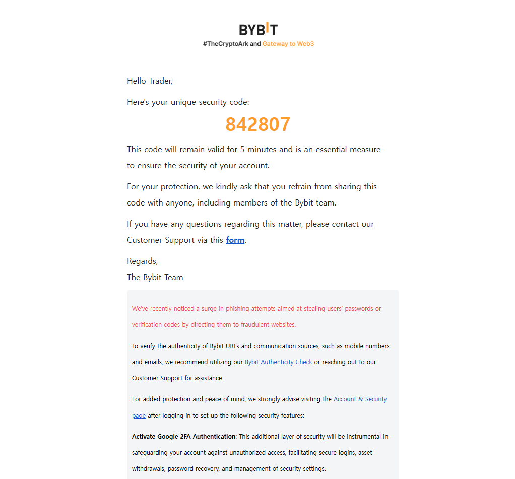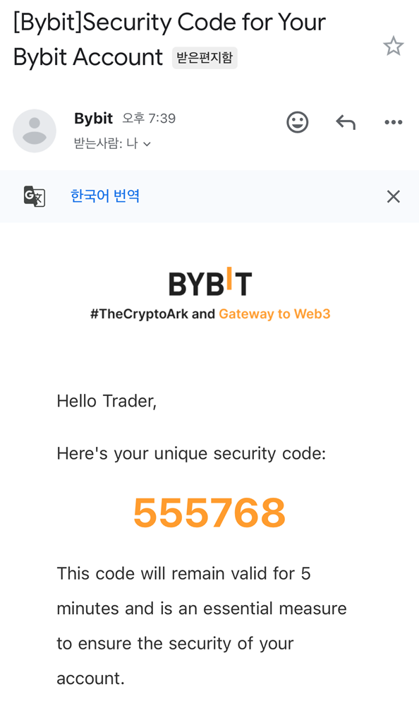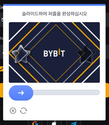 주소창에 bybit.com 직접 입력하여 접속합니다 (수동으로 CORINE 코드 입력)