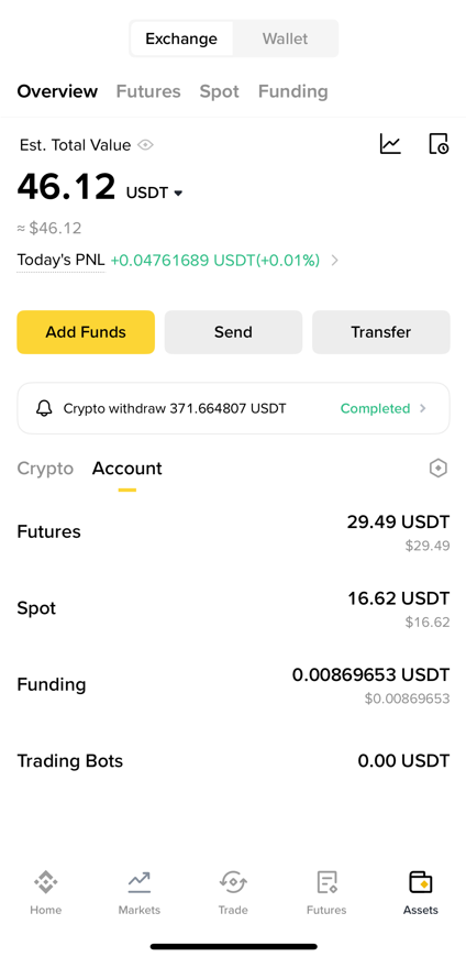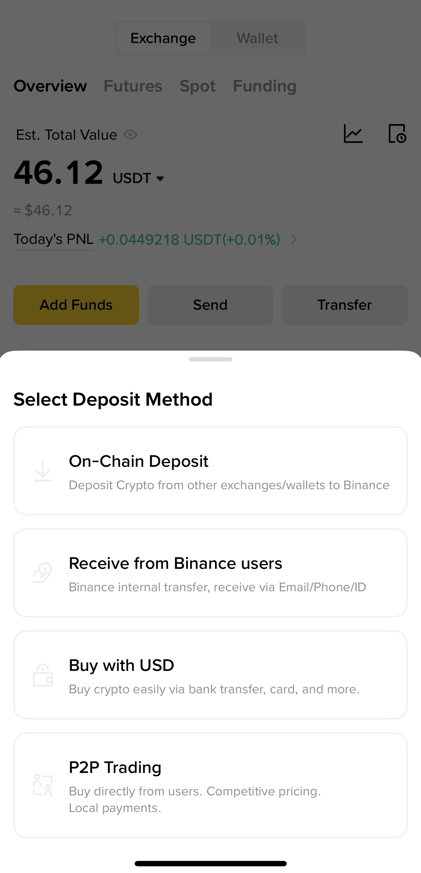 바이낸스 앱 하단 우측의 Assets(자산)을 눌러 자산 탭으로 이동하세요
