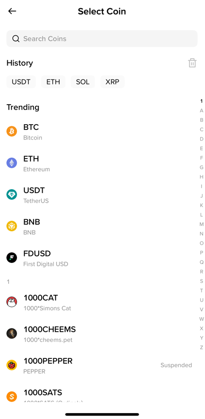 보통 속도가 빠르고 수수료가 저렴한 USDT(테더), XRP(리플), TRX(트론)을 사용합니다