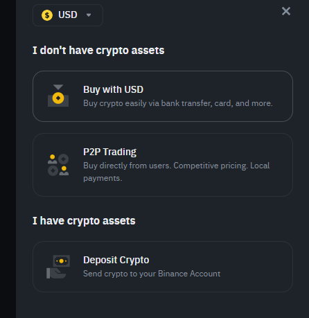 *Buy With USD 법정화폐로 코인을 구매하는 것이지만, 한국인들은 사용 할 수 없습니다