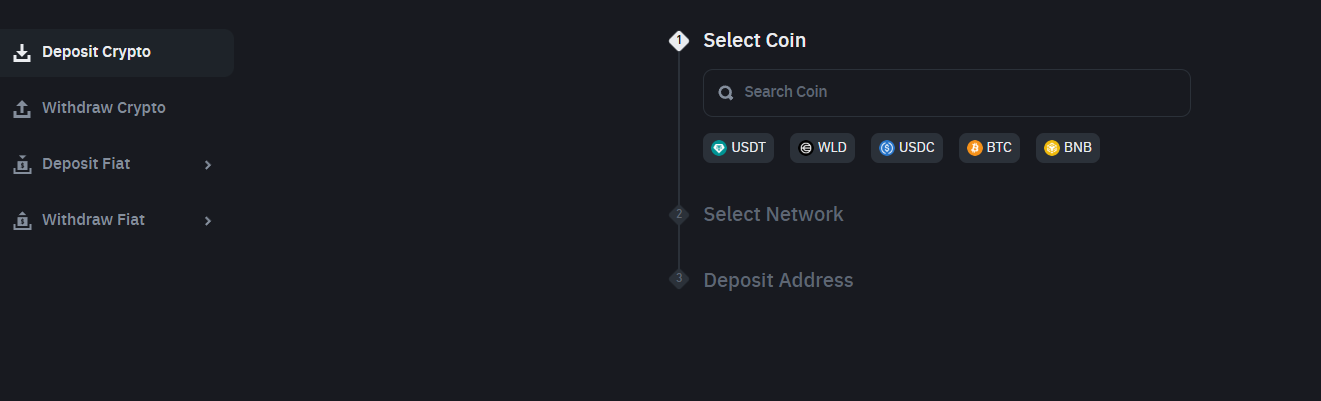 3번째에 위치한 Deposit Crypto(코인입금) 을 클릭해줍니다